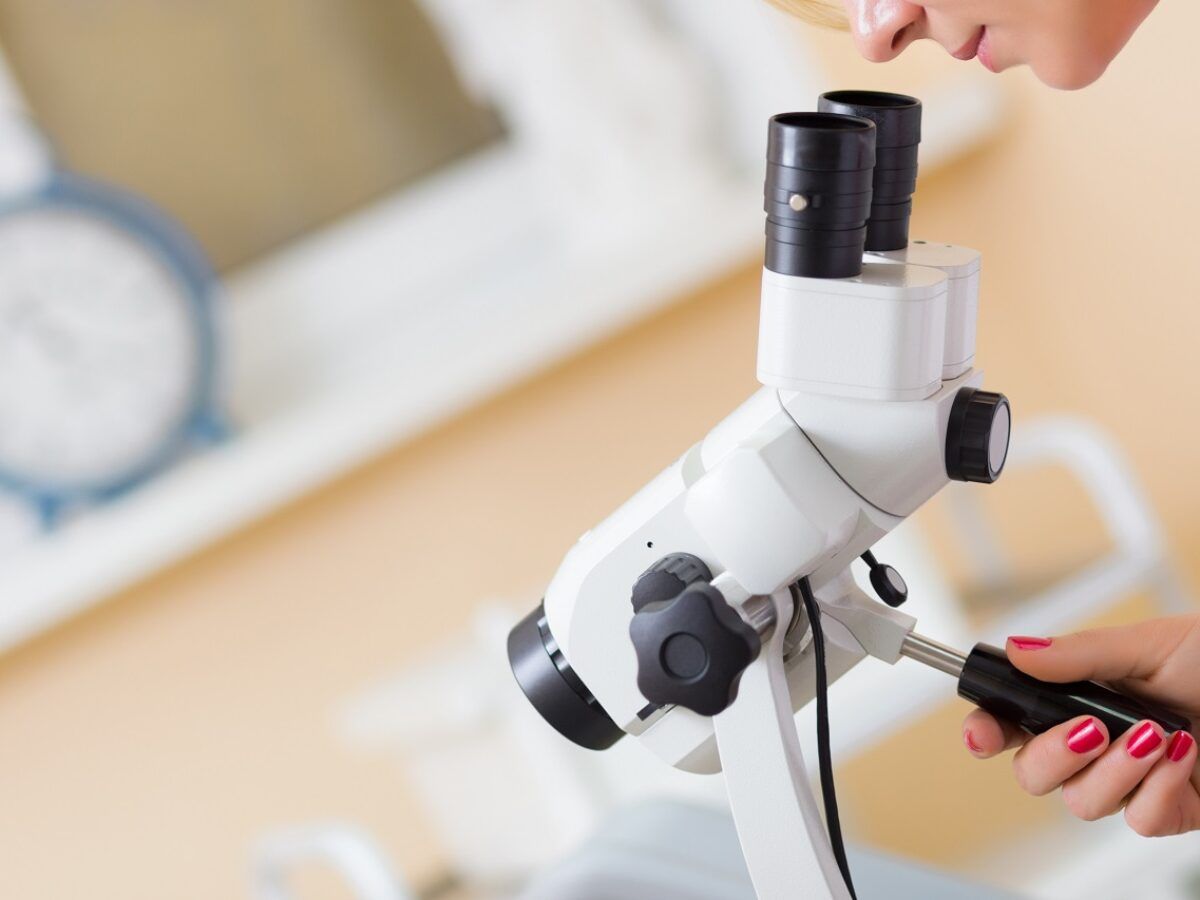 Процедура кольпоскопии выполняется на гинекологическом кресле: специалист вводит во влагалище гинекологическое зеркало и фиксирует его в нужном положении. Затем осуществляется осмотр шейки матки с помощью кольпоскопа — прибора, представляющего собой бинокулярный микроскоп с подсветкой. Кольпоскоп располагается на расстоянии примерно 10–15 см от наружных половых органов, а регулируемое увеличение позволяет врачу детально изучить все зоны шейки матки.